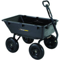 The newly-designed Gorilla Carts 600-lb. Capacity Poly Garden Dump Cart has an innovative, updated frame design that makes it quick and easy to assemble and put this cart to work. The cart features the patented quick-release dumping system, which allows the cart to be loaded and unloaded with ease, and the balanced 4-wheel design makes it a simple-to-use alternative to a wheelbarrow.